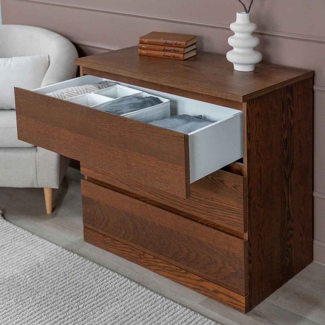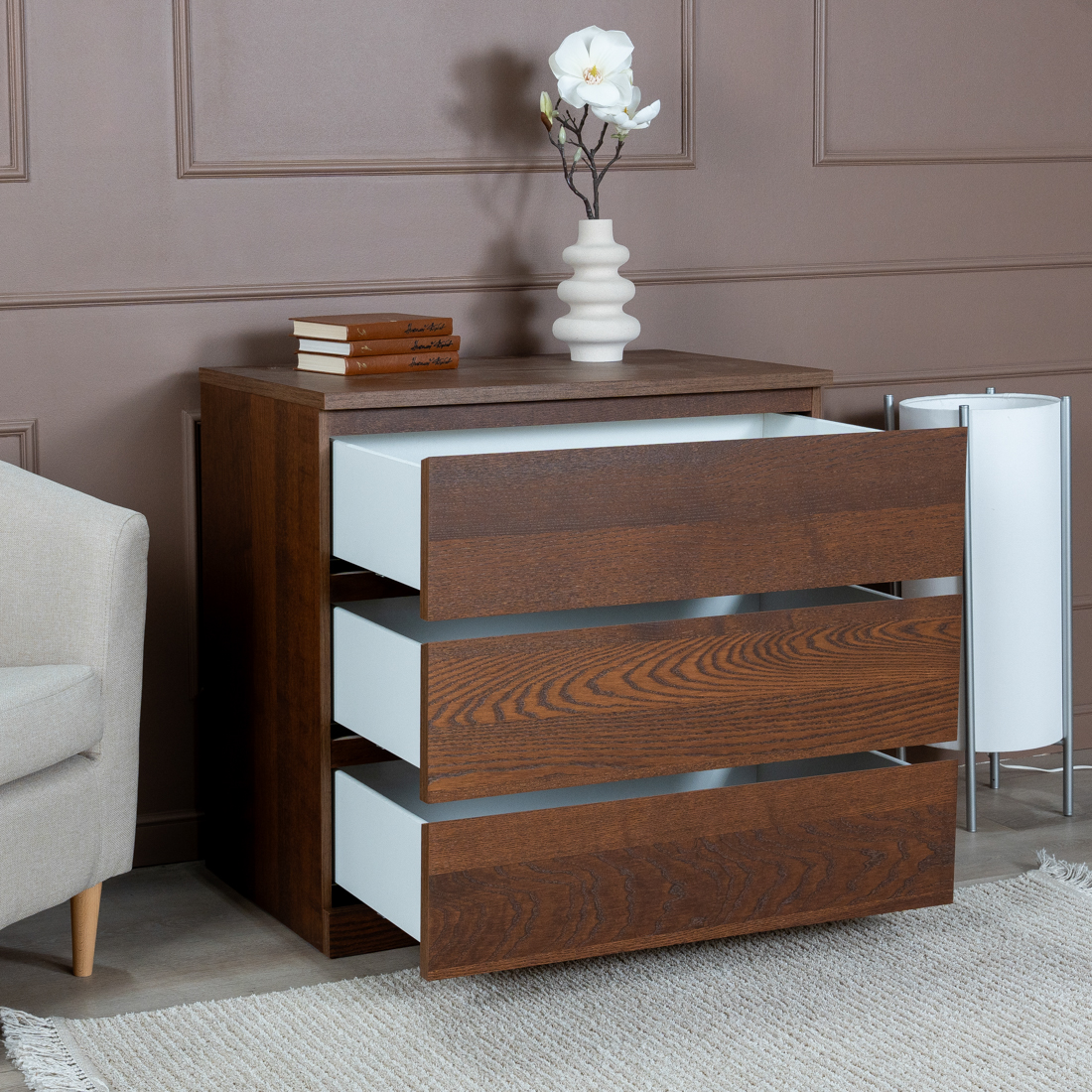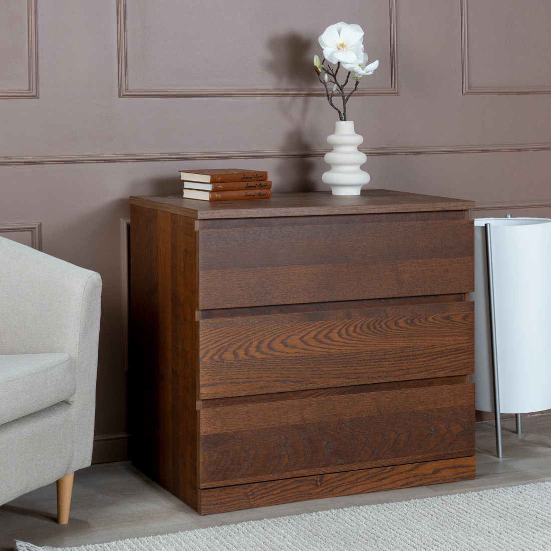 Комод для одежда Варма Прайм на три ящика повышенной вместительности, шпонированный, с направляющими скрытого монтажа, сдоводчикми GTV