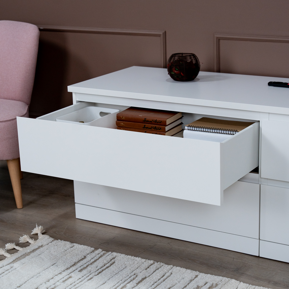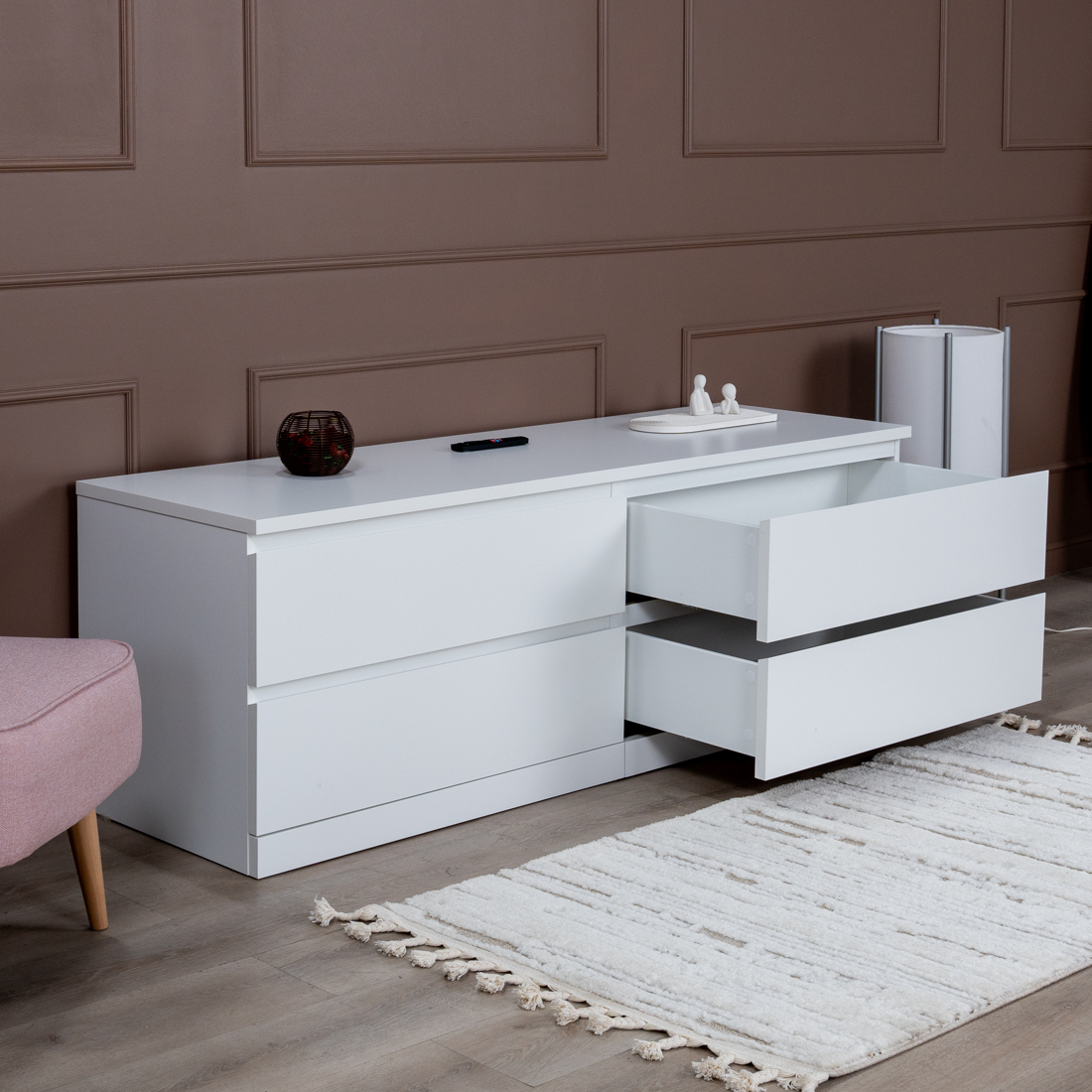 Тумба комод Варма Прайм на четыре ящика повышенной вместительности, шпонированный, с направляющими скрытого монтажа, сдоводчикми GTV