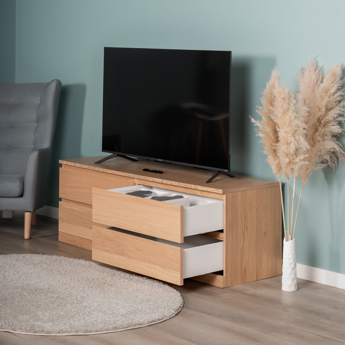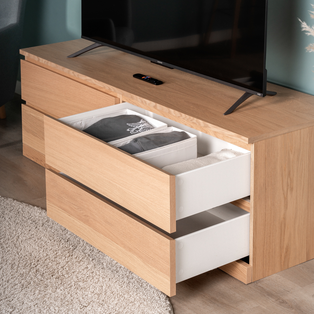 Тумба комод Варма Прайм на четыре ящика повышенной вместительности, шпонированный, с направляющими скрытого монтажа, сдоводчикми GTV