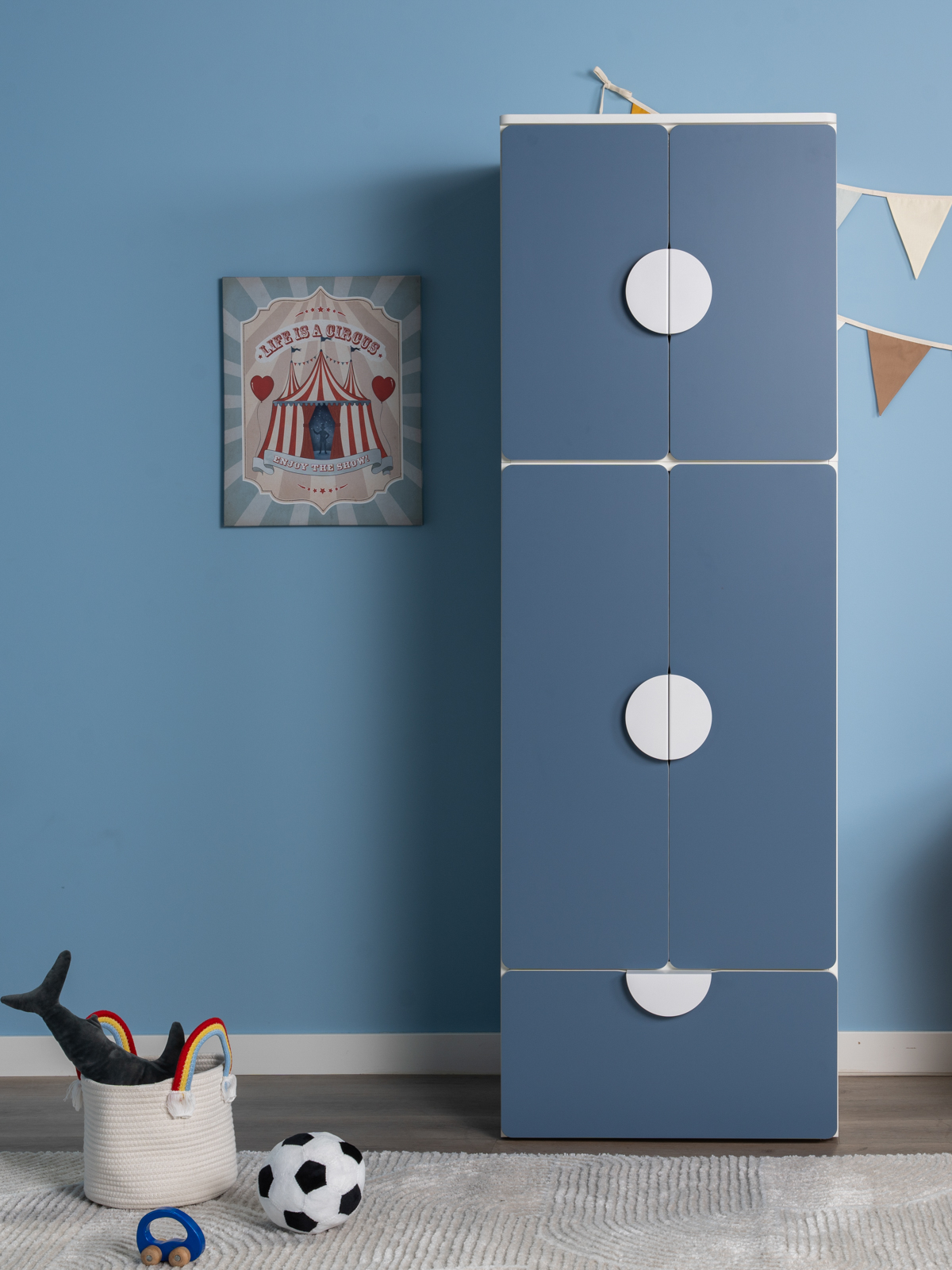 Шкаф распашной Пикси с 2 дверьми, габаритный размер 60x57x63, цвет серо-синий. Изготовлена из ДСП, окраска с УФ-лаком. Гарантийный срок 24 мес.